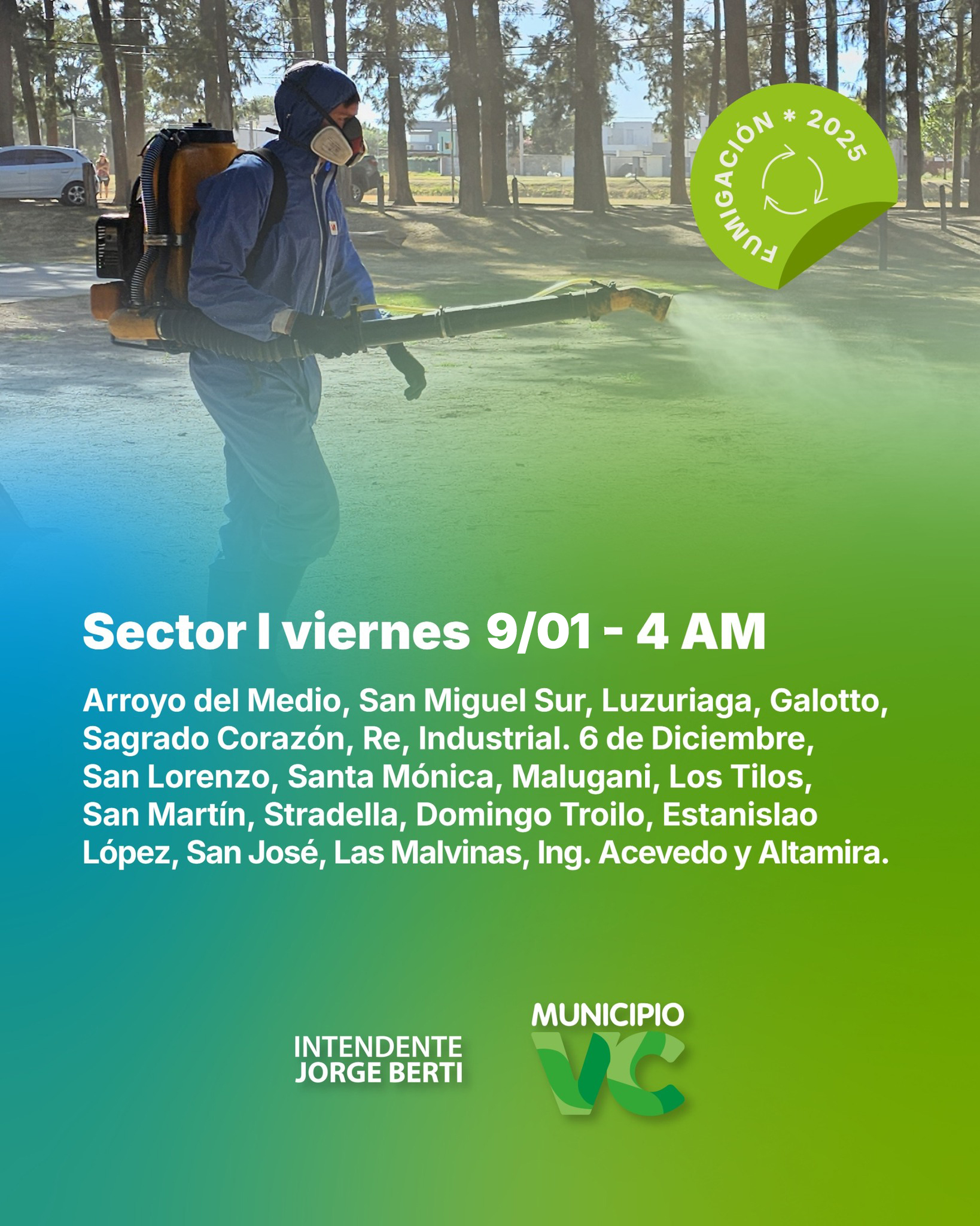 📅 Esta semana, las fumigaciones están programadas para realizarse a las 4:00 de la madrugada, los días jueves 8 y viernes 9 de enero.