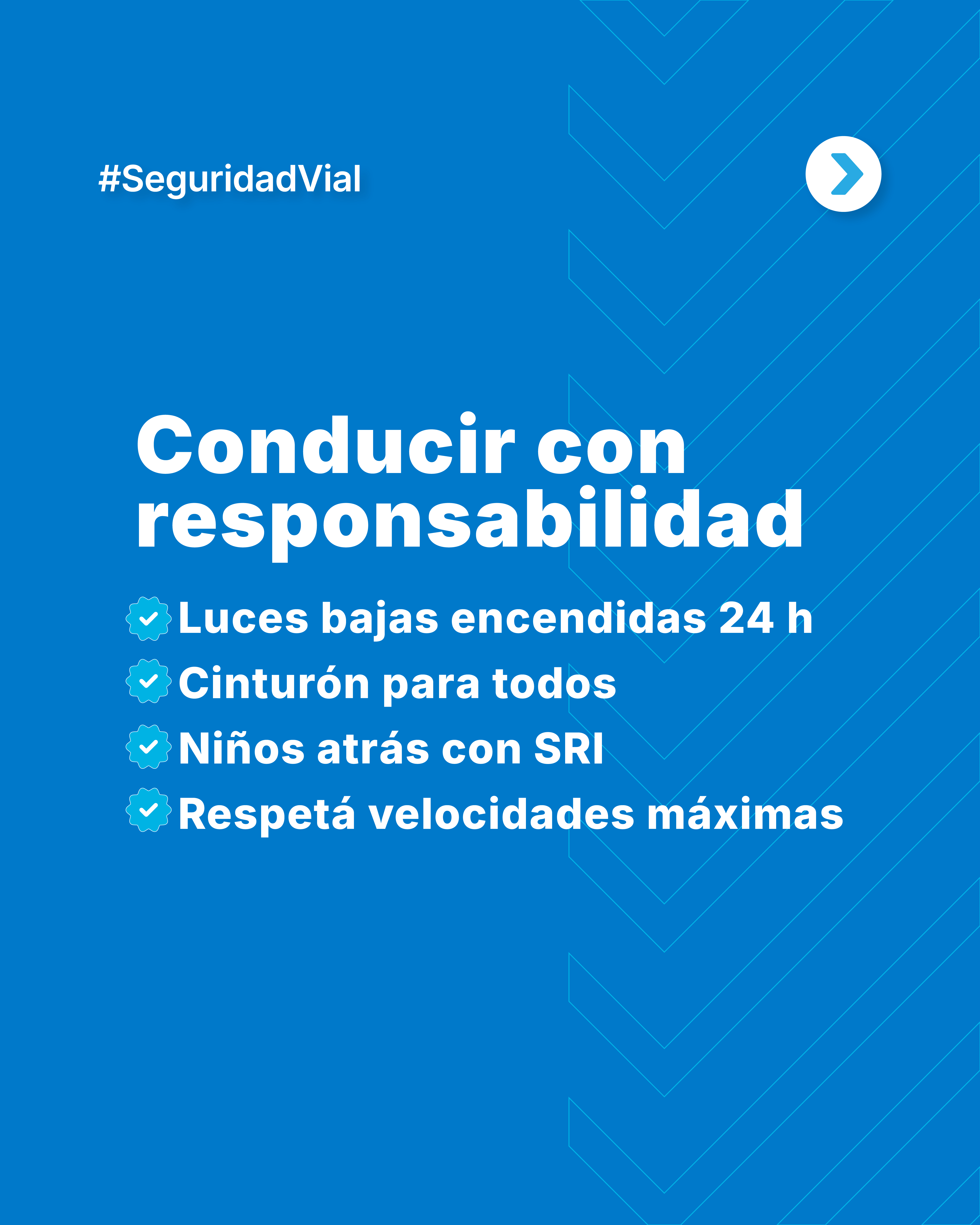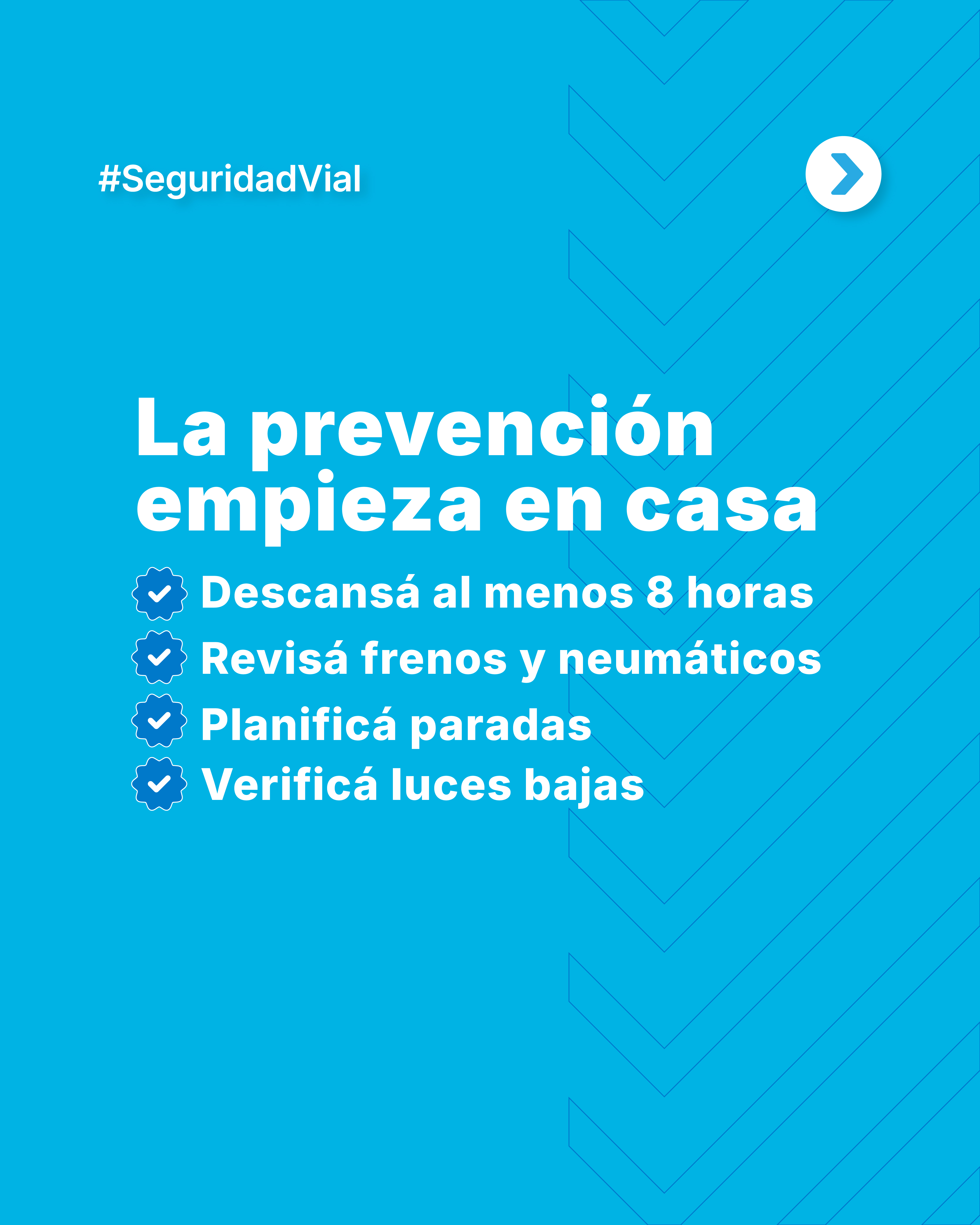 Antes de salir, revisá que la documentación esté en regla y que el vehículo se encuentre en condiciones. Durante el viaje, respetá las normas de tránsito, usá siempre el cinturón de seguridad, mantené las luces bajas encendidas, evitá el uso del celular y realizá pausas para descansar.