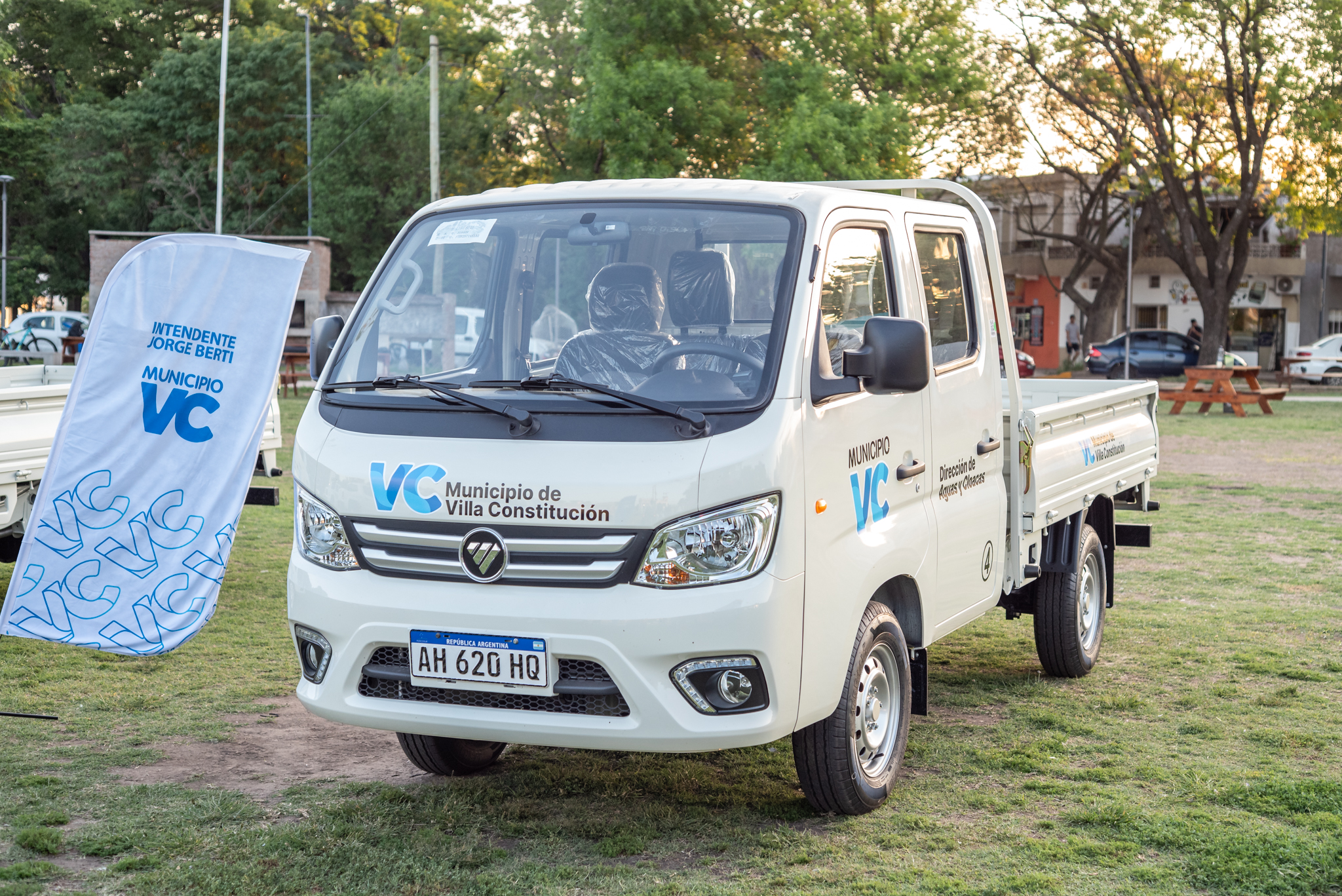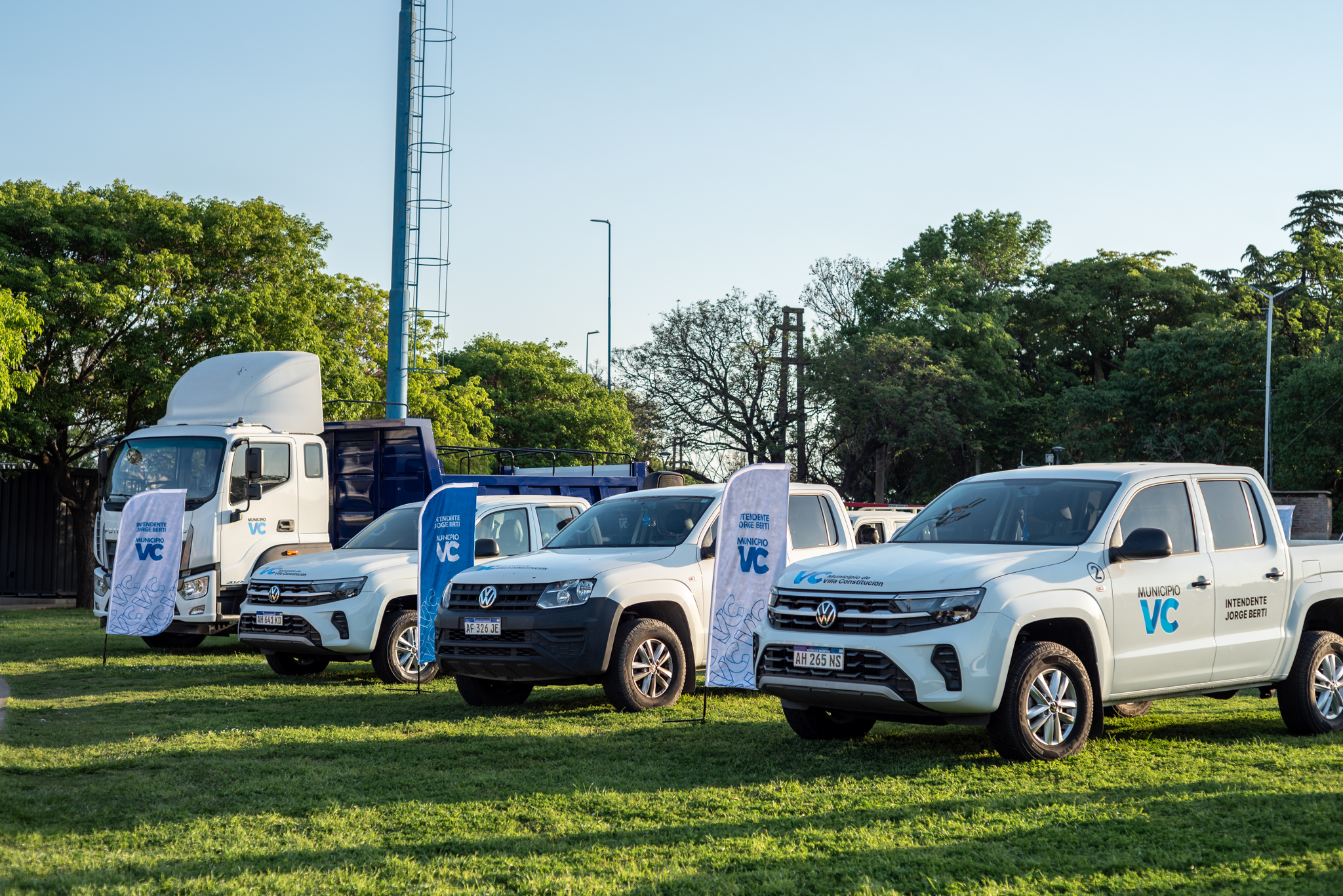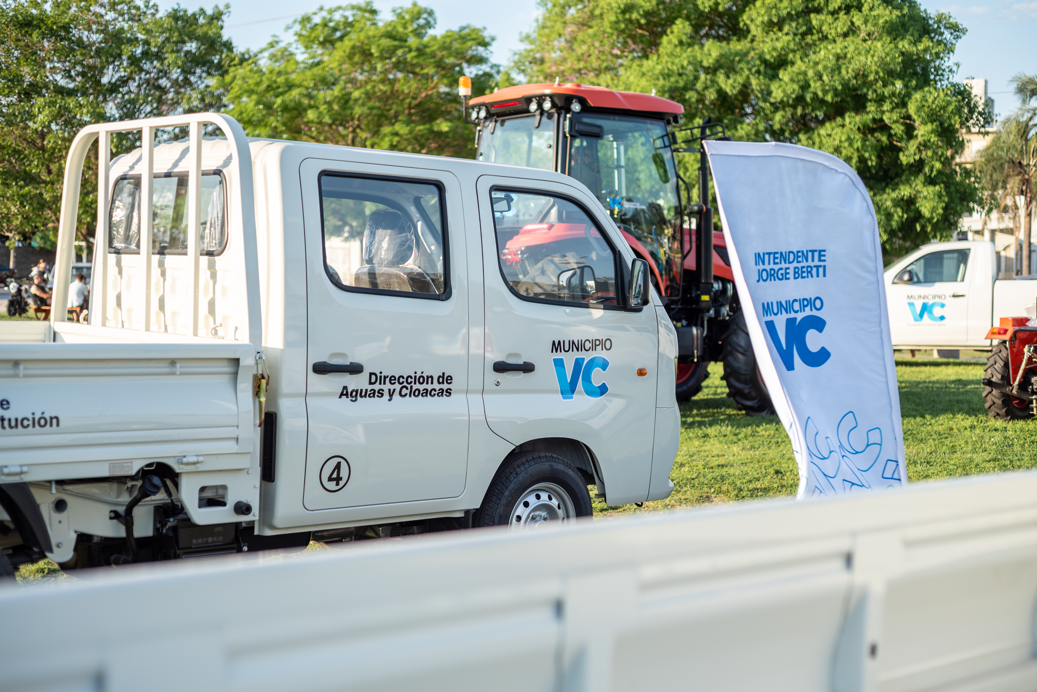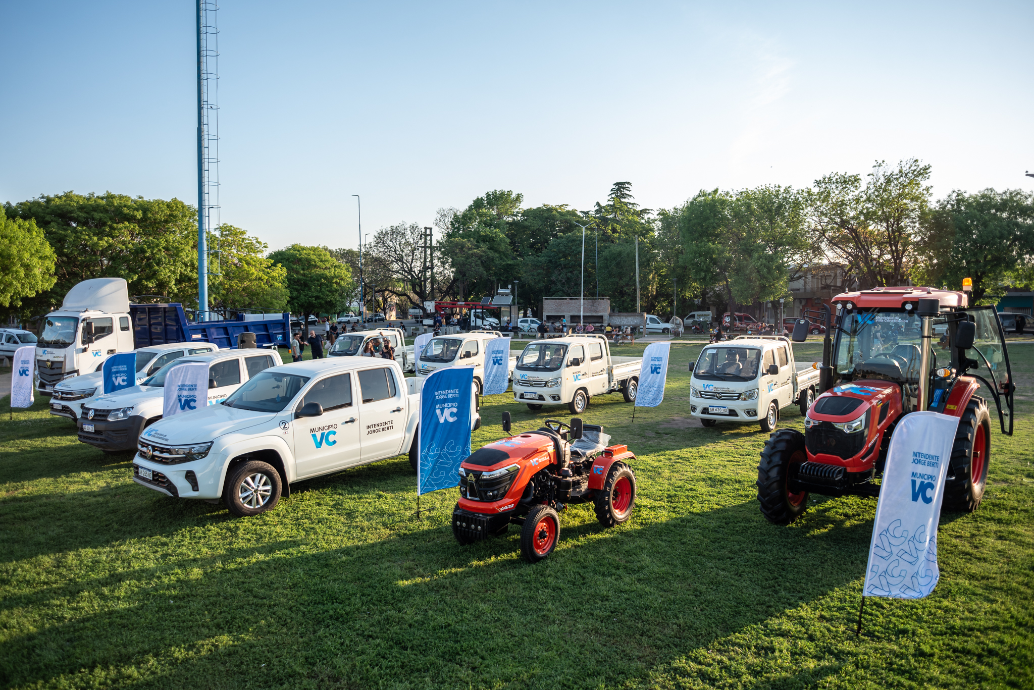 Las unidades adquiridas —dos camionetas Amarok doble cabina, cuatro camionetas Foton, un camión con caja y dos tractores (de 80 HP y 25 HP)— estarán destinadas a reforzar las tareas de mantenimiento urbano, limpieza, embellecimiento de espacios públicos y mejoras en redes de agua y desagües pluviales.