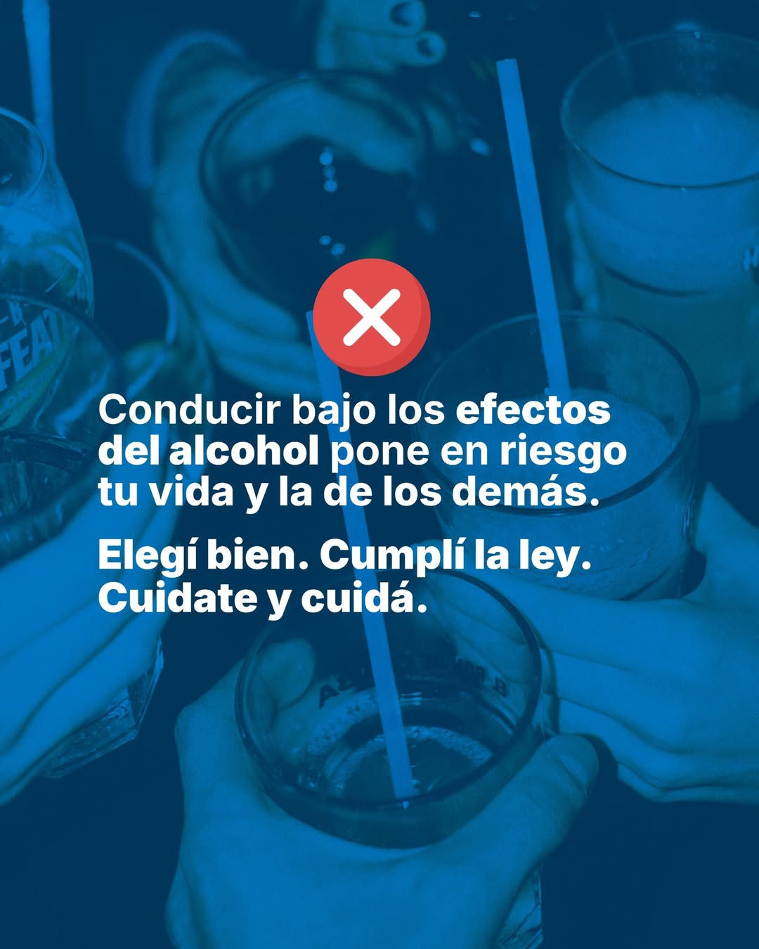 En nuestra ciudad la tolerancia es cero y está prohibido conducir bajo los efectos del alcohol. Pensá en tu seguridad y en la de los demás: podés elegir un conductor designado o simplemente, disfrutar sin manejar.