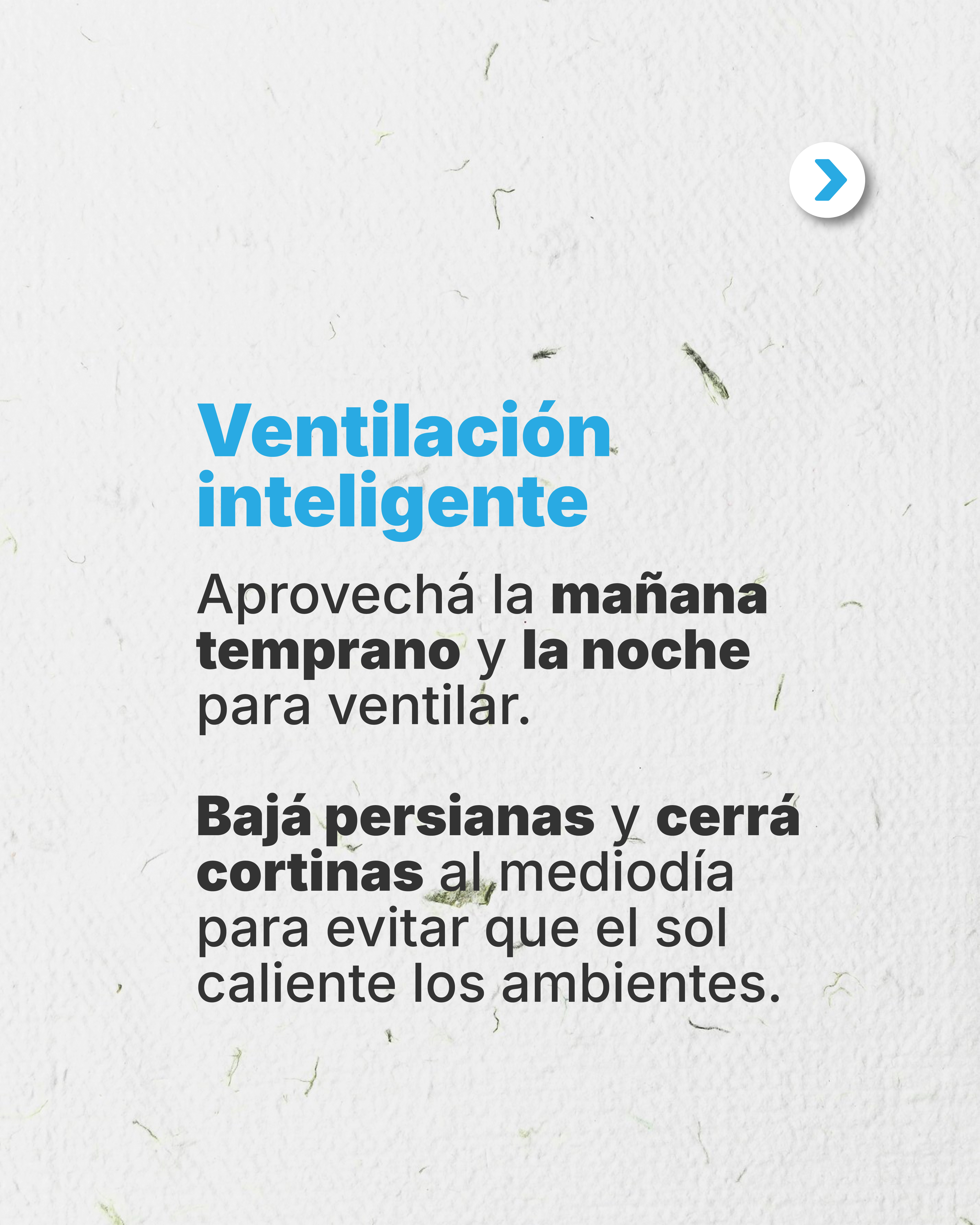 Elegí iluminación LED, usá el aire acondicionado con criterio, ventilá los ambientes en los momentos adecuados y desenchufá los aparatos que no estés usando. Además, evitá el uso de electrodomésticos que generan calor durante las horas pico.