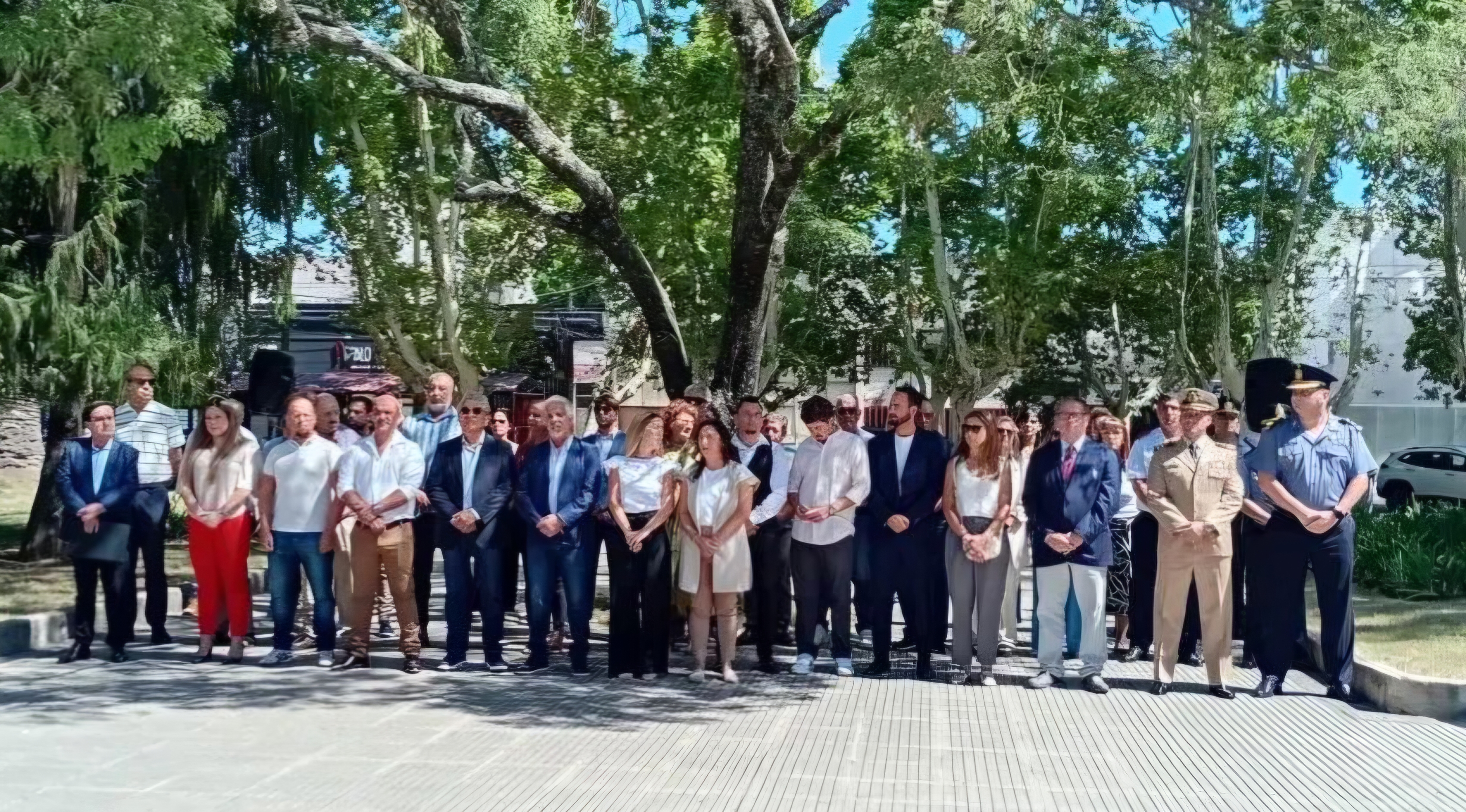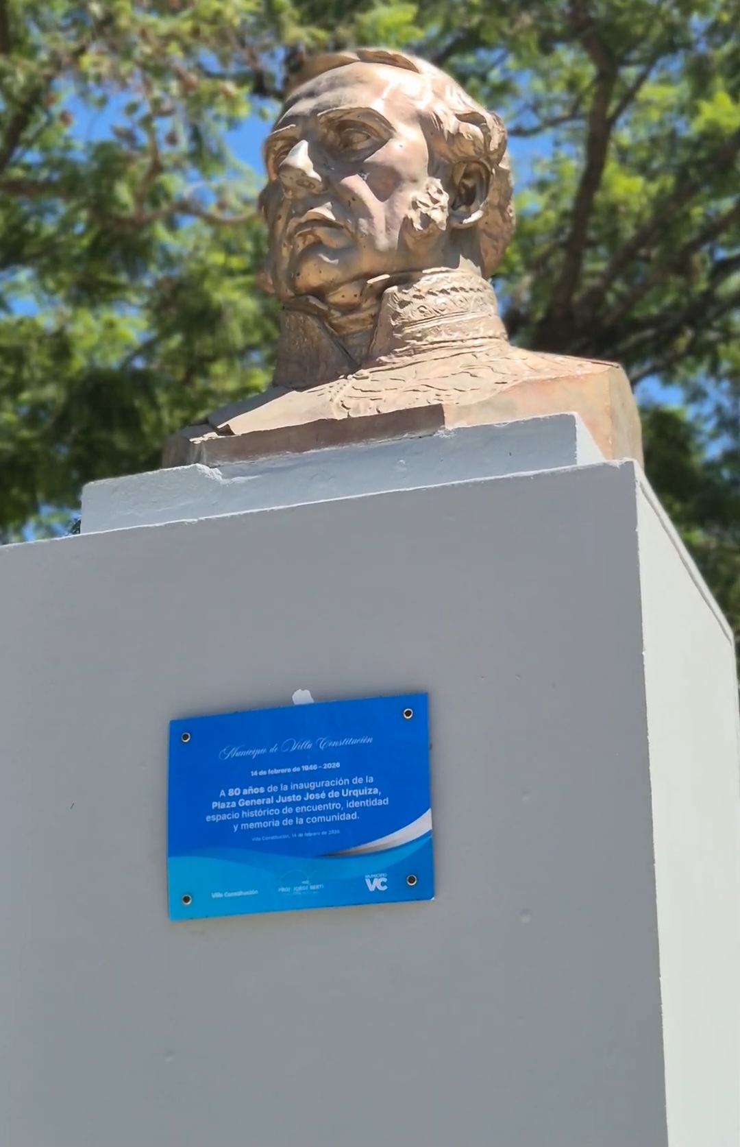 Luego de la ceremonia central, parte de la concurrencia se trasladó a la Plaza General Justo José de Urquiza, uno de los espacios públicos más emblemáticos de la ciudad, donde se realizó el descubrimiento de una placa conmemorativa al cumplirse 80 años de su inauguración.